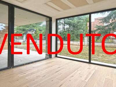 Oreno di Vimercate, zona residenziale, comoda col raggiungimento del centro sia di Vimercate che di Oreno, delle principali vie di comunicazione nonchè del nuovo polo ospedaliero, in palazzina di sole sette unità abitative, appartamento su due livelli così composto: piano terreno, avente altezza mt. 2,40, salone con cucina abitabile a vista e bagno/lavanderia per una superficie di mq. 64,00 commerciali; tutti i locali hanno l'uscita sul giardino di mq. 265,00; al piano primo, collegato da scala interna ma con accesso anche dal vano scala condominiale servito da ascensore, soggiorno, camera matrimoniale con predisposizione per la creazione di un bagno dedicato, due camere e bagno padronale oltre ad un terrazzino ed un balcone: il piano misura mq. 96,00 commerciali.