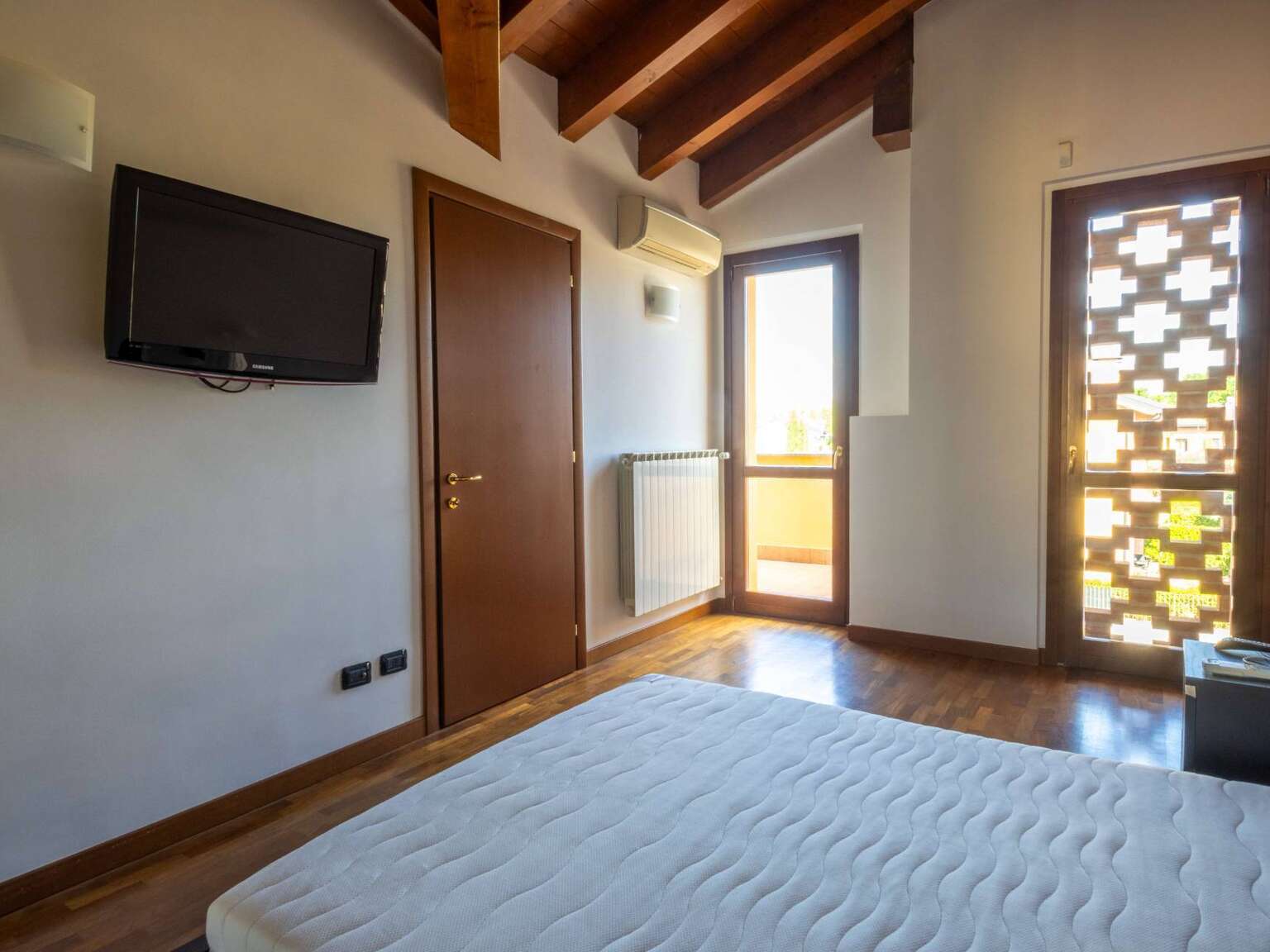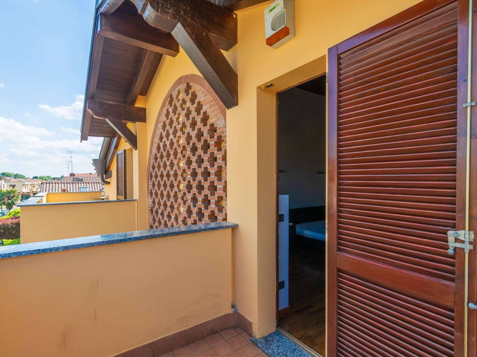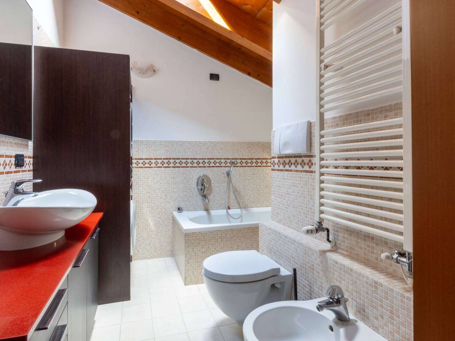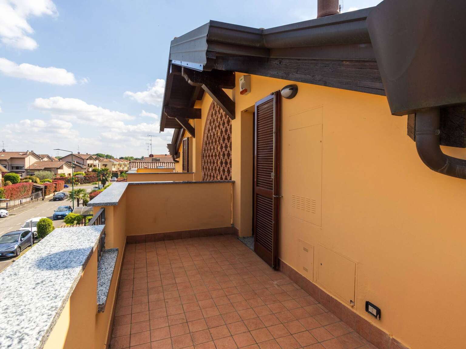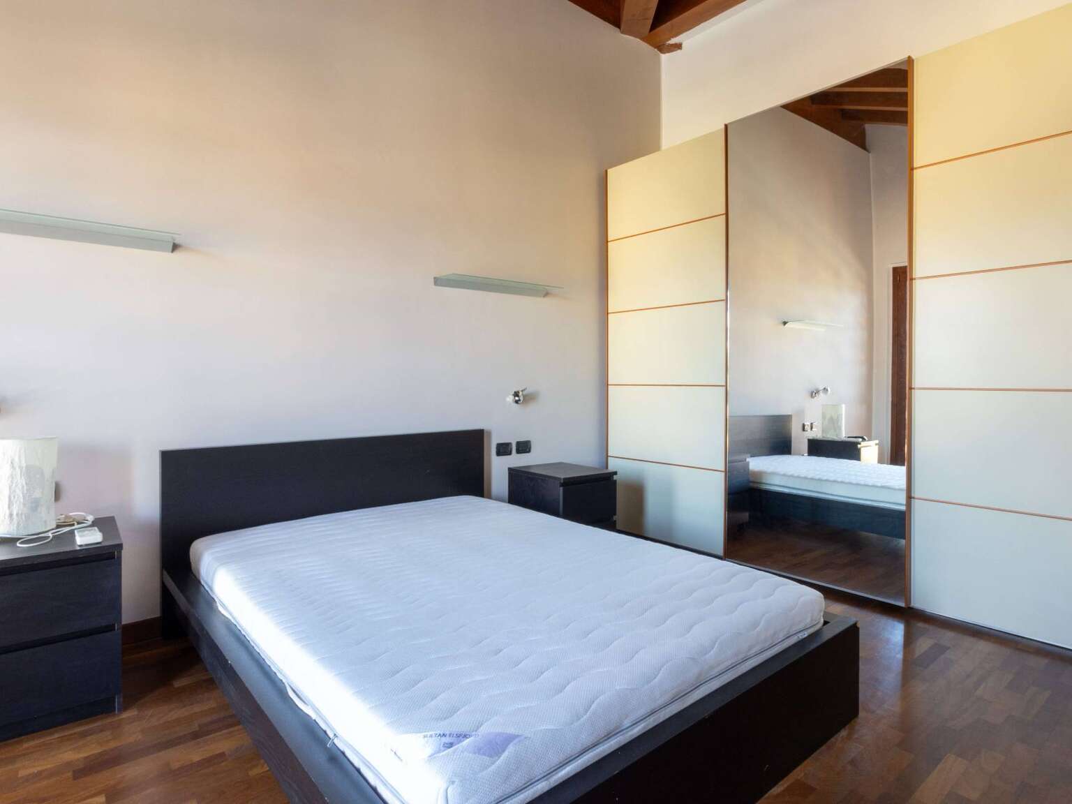 Attraverso la scala interna si accede al piano superiore, dove troviamo la mansarda abitabile con zona notte che comprende due camere da letto, tra cui la camera matrimoniale con accesso al secondo terrazzo di mq. 11, riservato e ben illuminato nelle prime ore della giornata. Il piano è completato da un secondo bagno finestrato con Velux, completo di vasca e predisposto con attacchi per lavatrice e asciugatrice.