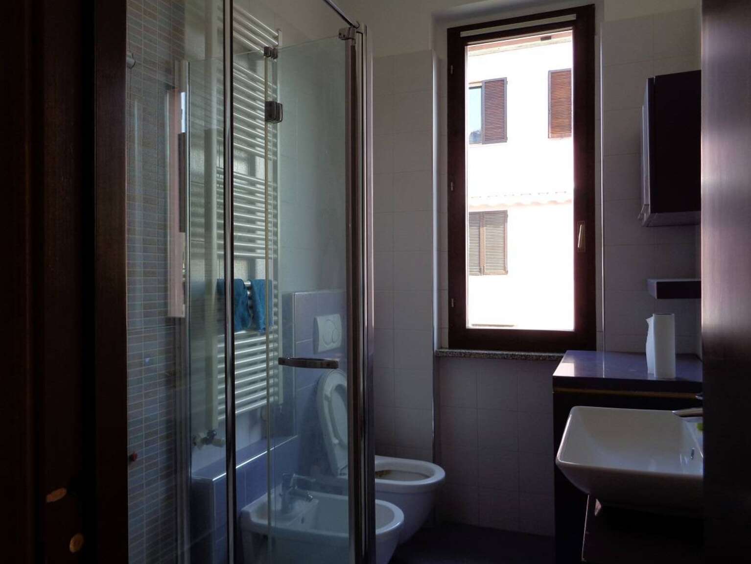 L'ambiente è riscaldato con impianto a radiatori, alimentato da metano con caldaia autonoma. L'appartamento si presenta in ordine, nel corso degli ultimi anni sono stati eseguiti lavori di ristrutturazione che hanno riguardato il bagno e la sostituzione di tutta la pavimentazione, marmo in soggiorno e ceramica tipo parquet grigio nelle camere. L'esterno come tutta la palazzina necessita di lavori di ristrutturazione. L'esposizione dell'immobile è ottima, con affacci a ovest, nord ed est, che garantiscono un'ottima luminosità naturale per tutto il giorno.